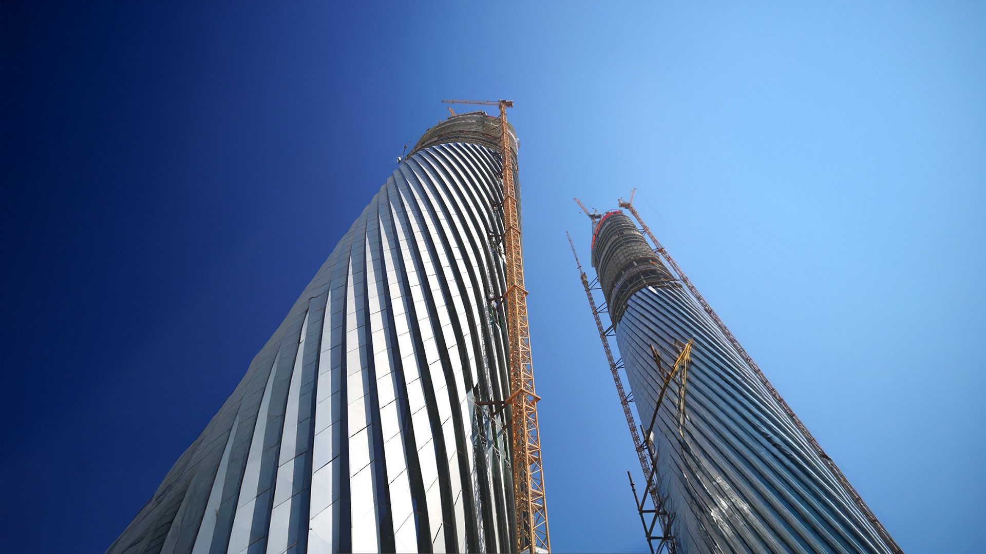 A defining characteristic of the façade is its dynamic, twisting geometry. The towers’ elliptical footprints rotate 90° as they rise, morphing the form, gently shifting the viewing axis outward, and unlocking panoramic views of the city and waterfront.